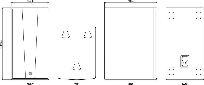 箱體外形 Physical 梯形 箱體材料 Enclosure Material 18/25 厘厚樺木夾板 箱體網(wǎng)面 Enclosure Material 模壓鋼制圓形孔網(wǎng)面,內(nèi)貼專業(yè)防水透氣爆破棉 表面漆 Finish 水性環(huán)保多層耐刮、耐腐蝕、防水灑點(diǎn)油漆 吊裝點(diǎn) Handing Position ———— 支撐座 Pole Mount ———— |