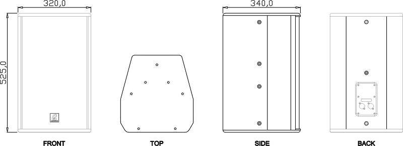 單元組成 Drivers LF:1*10",Voice-coil:2.5"/HF:1*1",Voice-coil:1.73" 頻率響應(yīng)(±3dB) Frequency(±3dB) 55-19000Hz 靈敏度(1M、1W) Sensitivity(1M、1W) 96dB 最大輸入聲壓級(jí) Maximum SPL 122dB 額定阻抗 Nominal Impedance 8 ohm 功率 Rated Power 300W AES/500W Peak 推薦放大器功率 Recommended AMP 400W/8 ohm 分頻點(diǎn) Crossover Frequency 2000Hz 覆蓋角度(-6dB) Dispersion(-6dB) 90o*60o 輸入連接器 Connectors 2*Speakon NL4MP 凈尺寸(H*W*D) Dimensions(H*W*D) 525mm*320mm*338mm 包裝尺寸(H*W*D) Packing Dimensions(H*W*D) 600mm*390mm*400mm 凈重量(KG) Net Weight(KG) 17.9 包裝重量(KG) Gross Weight(KG) 19.7 |